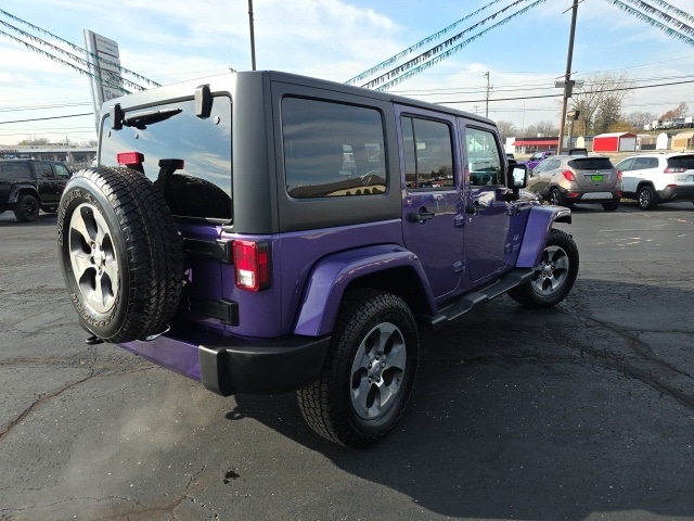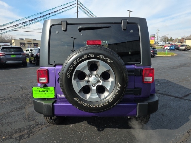 2017 Xtreme Purple Pearlcoat Jeep Wrangler Unlimited Sahara 4WD 3.6L V6 24V VVT 5-Speed Automatic This Jeep Wrangler has many features and is well equipped including, Passed 101 Point Dealership Safety Inspection!, 18" x 7.5" Polished Satin Carbon Wheels, Air Conditioning w/Auto Temperature Control, Air Filtering, Black 3-Piece Hard Top, Body Color Appliques Front Bumper, Body Color Appliques Rear Bumper, Body Color/Accent Color Grille, Connectivity Group, Delete Sunrider Soft Top, Freedom Panel Storage Bag, Fully automatic headlights, Humidity Sensor, Leather steering wheel, Power windows, Quick Order Package 24G, Radio: 130, Rear Window Defroster, Rear Window Wiper/Washer, Remote keyless entry, Remote USB Port, Security system, Tilt steering wheel, Tire Pressure Monitoring Display, Uconnect Voice Command w/Bluetooth, Vehicle Information Center.