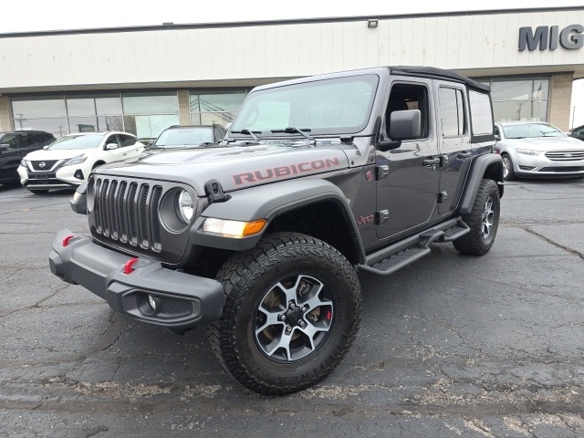 2021 Granite Crystal Metallic Clearcoat Jeep Wrangler Unlimited Rubicon 4WD 2.0L I4 DOHC 8-Speed Automatic This Jeep Wrangler has many features and is well equipped including, Passed 101 Point Dealership Safety Inspection!, 4.10 Rear Axle Ratio, Apple CarPlay/Android Auto, Automatic temperature control, Cold Weather Group, Fully automatic headlights, Heated Front Seats, Heated Steering Wheel, Leather steering wheel, MOPAR All-Weather Floor Mats (DISC), ParkView Rear Back-Up Camera, Premium Black Sunrider Soft Top, Quick Order Package 22R, Radio: Uconnect 4 w/7" Display, Remote keyless entry, Remote Start System, Security system, Tilt steering wheel.