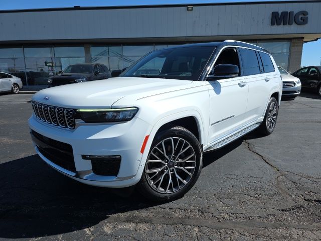 2022 Bright White Clearcoat Jeep Grand Cherokee L Summit 4WD HEMI 5.7L V8 Multi Displacement VVT 8-Speed Automatic This Jeep Grand Cherokee L has many features and is well equipped including, Passed 101 Point Dealership Safety Inspection!, 19 Speakers High Performance Audio, 2nd Row Manual Window Shades, 2nd Row Seat Center Armrest/Cupholders, 950 Watt Amplifier, Active Noise Control System, Advanced Protech Group IV, Auto High-beam Headlights, Auto-leveling suspension, Deluxe Headliner, Front dual zone A/C, Front Passenger Interactive Display, Fully automatic headlights, Genuine wood dashboard insert, Genuine wood door panel insert, Heads-Up Display, Heated front seats, Heated rear seats, Interior Rear Facing Camera, Luxury Tech Group V, Memory seat, MOPAR Finishing Package, MOPAR Front Splash Guards, MOPAR Paint Protection Film, MOPAR Rear Splash Guards w/Jeep Logo, Navigation System, Night Vision/Pedestrian-Animal Detection, Palermo Leather Door Trim, Palermo Leather Seats, Power driver seat, Power Liftgate, Power moonroof, Power passenger seat, Quick Order Package 25U Summit Reserve, Radio: Uconnect 5 Nav w/10.1" Display, Rain sensing wipers, Rear dual zone A/C, Rearview Autodim Digital Display Mirror, Remote keyless entry, Security system, Speed-Sensitive Wipers, Summit Reserve, Summit Reserve Badge, Tilt steering wheel, Turn signal indicator mirrors, Two Tone Paint Group, Ventilated front seats, Ventilated Rear Seats, Wheels: 21" x 9.0" Machined Face/Painted Aluminum, Wireless Charging Pad.
