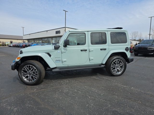Sky 1-Touch Power! Arrival! 2023 Earl Clearcoat Jeep Wrangler Sahara 4xe 4WD 2.0L I4 DOHC 8-Speed Automatic This Jeep Wrangler has many features and is well equipped including, Passed 101 Point Dealership Safety Inspection!, Apple CarPlay/Android Auto, Cold Weather Group, Front dual zone A/C, Fully automatic headlights, Heated Front Seats, Heated Steering Wheel, Leather Shift Knob, Navigation System, ParkView Rear Back-Up Camera, Premium McKinley Trimmed Seats, Quick Order Package 29P Sahara, Radio: Uconnect 4C Nav w/8.4" Display, Remote keyless entry, Remote Start System, Security system, Side Steps, Sky 1-Touch Power Top, Tilt steering wheel, Wheels: 20" x 8" Fully Painted Aluminum.