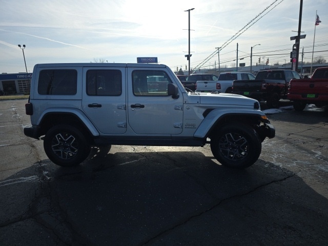 2024 Silver Zynith Clearcoat Jeep Wrangler Sahara 4WD 3.6L V6 24V VVT 8-Speed Automatic This Jeep Wrangler has many features and is well equipped including, Passed 101 Point Dealership Safety Inspection!, 12.3" Touchscreen Display, 4G LTE Wi-Fi Hot Spot, Alpine Premium Audio System, Apple CarPlay, Apple CarPlay/Android Auto, Auto High Beam Headlamp Control, Auto-Dimming Rear-View Mirror, Blind Spot & Cross Path Detection, Body Color 3-Piece Hard Top, Connected Travel & Traffic Services, Connectivity - US/Canada, Disassociated Touchscreen Display, Freedom Panel Storage Bag, Fully automatic headlights, Google Android Auto, GPS Navigation, Hard Seat Back, HD Radio, Heated front seats, Heated steering wheel, Integrated Center Stack Radio, Integrated Off-Road Camera, Integrated Voice Command w/Bluetooth, Leather Wrapped Park Brake Handle, Leather Wrapped Shift Knob, McKinley Trimmed Seats, No Soft Top, ParkSense Rear Park Assist System, ParkView Rear Back-Up Camera, Power 4-Way Driver Lumbar Adjust, Power 4-Way Passenger Lumbar Adjust, Power Adjust 8-Way Driver Seat, Power Adjust 8-Way Front Passenger Seat, Quick Order Package 24G Sahara, Radio: Uconnect 5 Nav w/12.3" Display, Rear Window Defroster, Rear Window Wiper/Washer, Remote keyless entry, Safety Group, Security system, Side Steps, SiriusXM Radio Service, SiriusXM w/360L, Technology Group, Tilt steering wheel, Universal Garage Door Opener, Wheels: 18" x 7.5" Machine/Painted Gray.