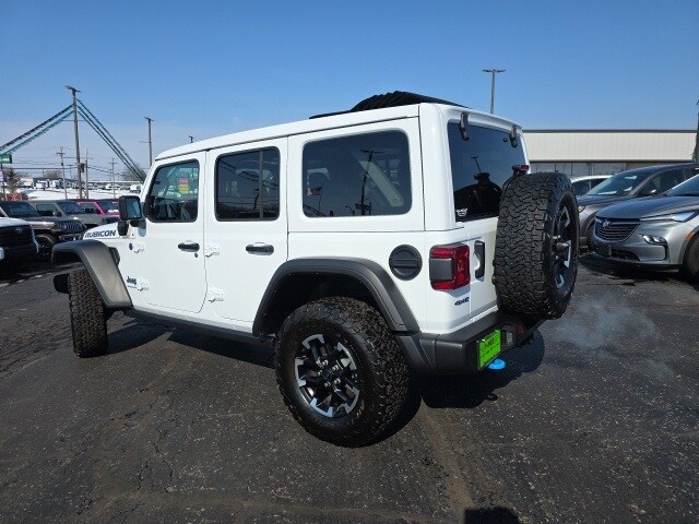 Sky 1-Touch Power! Arrival! 2025 Bright White Clearcoat Jeep Wrangler Rubicon 4xe 4WD 2.0L I4 DOHC 8-Speed Automatic This Jeep Wrangler has many features and is well equipped including, Passed 101 Point Dealership Safety Inspection!, 4.10 Rear Axle Ratio, 4G LTE Wi-Fi Hot Spot, Apple CarPlay/Android Auto, Auto High Beam Headlamp Control, Automatic temperature control, Blind Spot & Cross Path Detection, Convenience Group, Fully automatic headlights, Heated Front Seats, Heated Steering Wheel, Integrated Voice Command w/Bluetooth, ParkSense Rear Park Assist System, ParkView Rear Back-Up Camera, Power Top Quarter Window Storage Bag, Quick Order Package 29V Rubicon 4xe, Radio: Uconnect 5 w/12.3" Display, Rear Window Defroster, Rear Window Wiper/Washer, Remote keyless entry, Remote Start System, Removable Rear Quarter Windows, Safety Group, Security system, Sky 1-Touch Power Top, Tilt steering wheel, Universal Garage Door Opener, Wheels: 17" x 7.5" Machined w/Black Pockets.