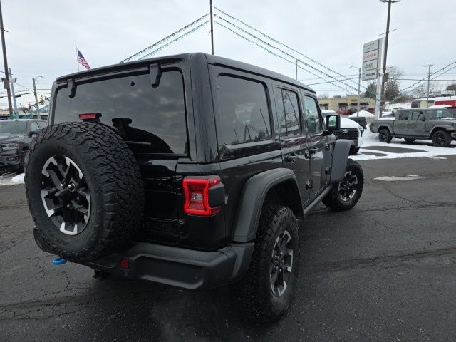 Sky 1-Touch Power! Arrival! 2025 Black Clearcoat Jeep Wrangler Rubicon 4xe 4WD 2.0L I4 DOHC 8-Speed Automatic This Jeep Wrangler has many features and is well equipped including, Passed 101 Point Dealership Safety Inspection!, 4.10 Rear Axle Ratio, 4G LTE Wi-Fi Hot Spot, Apple CarPlay/Android Auto, Auto High Beam Headlamp Control, Automatic temperature control, Blind Spot & Cross Path Detection, Convenience Group, Fully automatic headlights, Heated Front Seats, Heated Steering Wheel, Integrated Voice Command w/Bluetooth, ParkSense Rear Park Assist System, ParkView Rear Back-Up Camera, Power Top Quarter Window Storage Bag, Quick Order Package 29V Rubicon 4xe, Radio: Uconnect 5 w/12.3" Display, Rear Window Defroster, Rear Window Wiper/Washer, Remote keyless entry, Remote Start System, Removable Rear Quarter Windows, Safety Group, Security system, Sky 1-Touch Power Top, Tilt steering wheel, Universal Garage Door Opener, Wheels: 17" x 7.5" Machined w/Black Pockets.