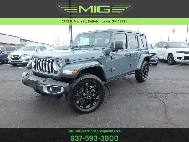 SAVE BIG MSRP $65775 Sky 1-Touch Power-Top! Arrival! 2025 Anvil Clear Coat Jeep Wrangler Sahara 4xe 4WD 2.0L I4 DOHC 8-Speed Automatic This Jeep Wrangler has many features and is well equipped including, Passed 101 Point Dealership Safety Inspection!, 4G LTE Wi-Fi Hot Spot, Apple CarPlay/Android Auto, Auto High Beam Headlamp Control, Automatic temperature control, Blind Spot & Cross Path Detection, Fully automatic headlights, Heated front seats, Heated steering wheel, ParkSense Rear Park Assist System, ParkView Rear Back-Up Camera, Power Top Quarter Window Storage Bag, Quick Order Package 29P Sahara 4xe, Radio: Uconnect 5 w/12.3" Display, Rear Window Defroster, Rear Window Wiper/Washer, Remote keyless entry, Removable Rear Quarter Windows, Safety Group, Security system, Sky 1-Touch Power Top, Tilt steering wheel, Wheels: 20" x 8" Painted Black Aluminum.