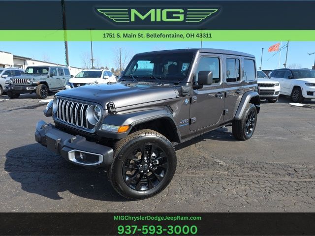 Sky 1-Touch Power! Arrival! 2025 Granite Crystal Metallic Clearcoat Jeep Wrangler Sahara 4xe 4WD 2.0L I4 DOHC 8-Speed Automatic This Jeep Wrangler has many features and is well equipped including, Passed 101 Point Dealership Safety Inspection!, 4G LTE Wi-Fi Hot Spot, Apple CarPlay/Android Auto, Auto High Beam Headlamp Control, Automatic temperature control, Blind Spot & Cross Path Detection, Fully automatic headlights, Heated front seats, Heated steering wheel, Integrated Voice Command w/Bluetooth, ParkSense Rear Park Assist System, ParkView Rear Back-Up Camera, Power Top Quarter Window Storage Bag, Quick Order Package 29P Sahara 4xe, Radio: Uconnect 5 w/12.3" Display, Rear Window Defroster, Rear Window Wiper/Washer, Remote keyless entry, Removable Rear Quarter Windows, Safety Group, Security system, Sky 1-Touch Power Top, Tilt steering wheel, Wheels: 20" x 8" Painted Black Aluminum.