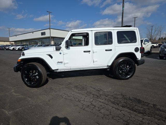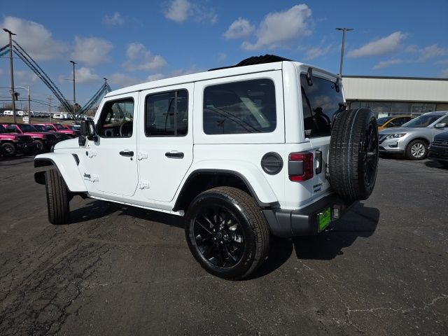 Sky 1-Touch Power! Arrival! 2025 Bright White Clearcoat Jeep Wrangler Sahara 4xe 4WD 2.0L I4 DOHC 8-Speed Automatic This Jeep Wrangler has many features and is well equipped including, Passed 101 Point Dealership Safety Inspection!, 4G LTE Wi-Fi Hot Spot, Apple CarPlay/Android Auto, Auto High Beam Headlamp Control, Automatic temperature control, Blind Spot & Cross Path Detection, Fully automatic headlights, Heated front seats, Heated steering wheel, Integrated Voice Command w/Bluetooth, ParkSense Rear Park Assist System, ParkView Rear Back-Up Camera, Power Top Quarter Window Storage Bag, Quick Order Package 29P Sahara 4xe, Radio: Uconnect 5 w/12.3" Display, Rear Window Defroster, Rear Window Wiper/Washer, Remote keyless entry, Removable Rear Quarter Windows, Safety Group, Security system, Sky 1-Touch Power Top, Tilt steering wheel, Wheels: 20" x 8" Painted Black Aluminum.