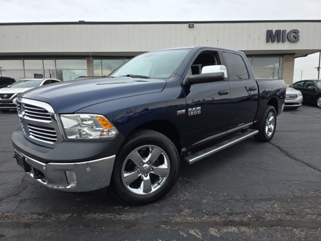2017 Midnight Blue Pearlcoat Ram 1500 Big Horn 4WD HEMI 5.7L V8 Multi Displacement VVT 8-Speed Automatic This Ram 1500 has many features and is well equipped including, Passed 101 Point Dealership Safety Inspection!, 1 Yr. Trial (Registration Required), 5-Year SiriusXM Traffic Service, 5-Year SiriusXM Travel Link Service, 8.4" Touchscreen Display, Cold Weather Group, Engine Block Heater, For Details Visit DriveUconnect.com, Fully automatic headlights, GPS Antenna Input, GPS Navigation, HD Radio, Integrated Voice Command w/Bluetooth, Media Hub (USB, AUX), ParkView Rear Back-Up Camera, Power Black Trailer Tow Mirrors, Protection Group, Radio: Uconnect 3C Nav w/8.4" Display, Remote keyless entry, SIRIUSXM Satellite Radio, SIRIUSXM Traffic, SiriusXM Travel Link, Tow Hooks, Trailer Brake Control, Trailer Tow Mirrors & Brake Group, Uconnect Access, Uconnect Access 1 Year Trial, Wheels: 20" x 8" Aluminum Chrome Clad, Winter Front Grille Cover.