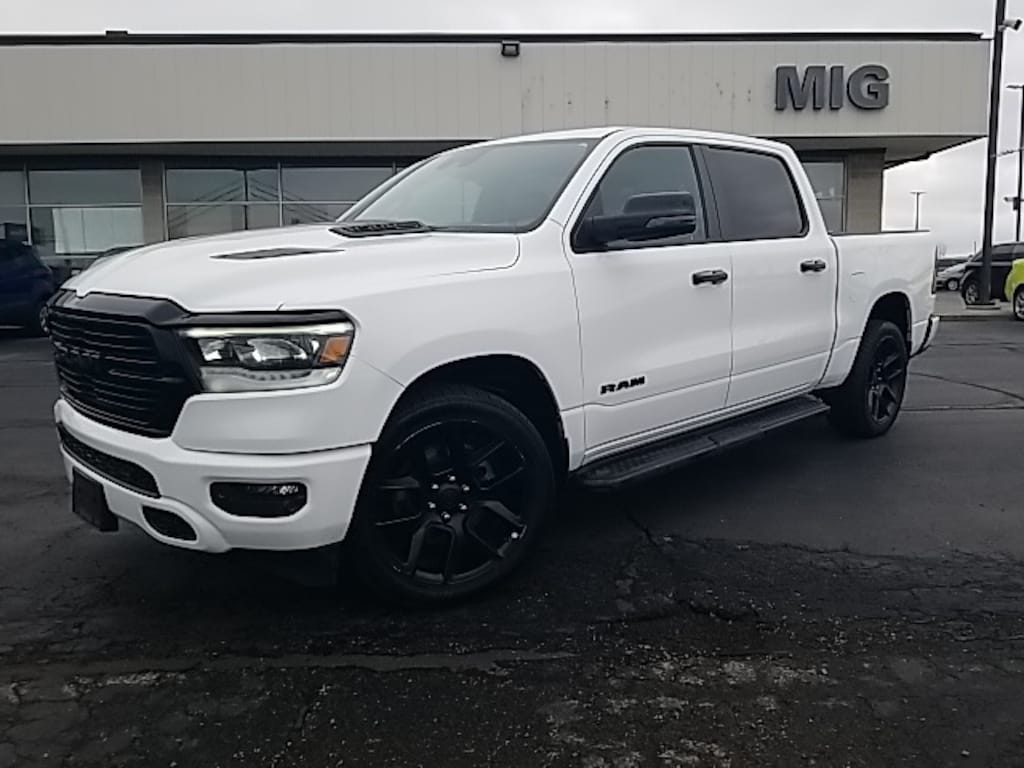 2023 Bright White Clearcoat Ram 1500 Laramie 4WD HEMI 5.7L V8 Multi Displacement VVT eTorque 8-Speed Automatic This Ram 1500 has many features and is well equipped including, Passed 101 Point Dealership Safety Inspection!, 12" Touchscreen Display, 2nd Row In Floor Storage Bins, 4G LTE Wi-Fi Hot Spot, Accent Color Door Handles, Accent Color Premium Power Mirrors, Adjustable pedals, Anti-Spin Differential Rear Axle, Apple CarPlay, Auto High Beam Headlamp Control, Auto-Dimming Exterior Driver Mirror, Black Exterior Truck Badging, Black Headlamp Bezels, Black Interior Accents, Black Painted Exterior Mirrors Caps, Blind Spot & Cross Path Detection, Body Color Front Bumper, Body Color Rear Bumper w/Step Pads, Bucket Seats, Class IV Receiver Hitch, Connected Travel & Traffic Services, Connectivity - US/Canada, Convex Wide-Angle Exterior Mirror Insert, Disassociated Touchscreen Display, Dome Dual LED Reading Lamp, Dual Exhaust w/Black Tips, Dual-Pane Panoramic Sunroof, Electric Shift-On-Demand Transfer Case, Exterior Mirrors Courtesy Lamps, Exterior Mirrors w/Heating Element, Exterior Mirrors w/Memory, Exterior Mirrors w/Supplemental Signals, Foam Bottle Insert (Door Trim Panel), For Details, Visit DriveUconnect.com, For More Info, Call 800-643-2112, Front Door Accent Lighting, Front LED Fog Lamps, Fully automatic headlights, Global Telematics Box Module (TBM), Google Android Auto, GPS Antenna Input, GPS Navigation, Grille Surround 3 Black Texture 2 Black, harman/kardon 19 Speaker Premium Sound, HD Radio, Heated Front Seats, Heated Steering Wheel, Integrated Center Stack Radio, Integrated Voice Command w/Bluetooth, Laramie Level B Equipment Group, Leather steering wheel, Leather Trimmed Bucket Seats, LED Dome/Reading Lamp, LED Reflector Headlamps, Memory seat, MOPAR Front & Rear Rubber Floor Mats, Night Edition, ParkSense Front/Rear Park Assist w/Stop, ParkView Rear Back-Up Camera, Pedal memory, Power 8-Way Driver & Passenger Seats, Power driver seat, Power-Folding Mirrors, Quick Order Package 27H Laramie, Radio: Uconnect 5 Nav w/12.0" Display, Rain Sensitive Windshield Wipers, RAM Grille Badge - Black, Rear Door Accent Lighting, Rear Power Sliding Window, Rear Underseat Compartment Storage, Rear Window Defroster, Remote keyless entry, Remote Tailgate Release, Security system, SiriusXM Radio Service, SiriusXM w/360L, Sport Performance Hood, Tilt steering wheel, USB Host Flip, Ventilated Front Seats, Wheels: 22" x 9" Forged Aluminum.