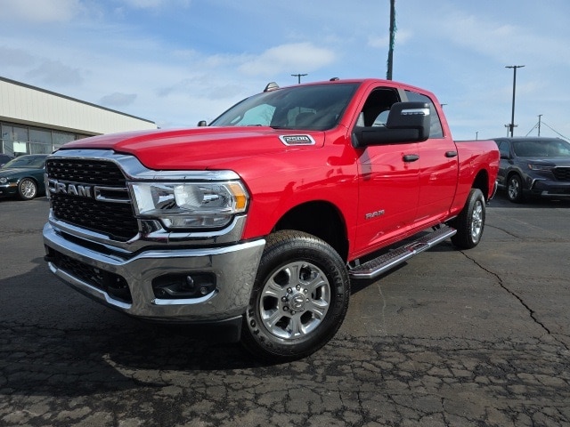 Recent Arrival! 2024 Flame Red Clearcoat Ram 2500 Big Horn 4WD 6.4L V8 8-Speed Automatic This Ram 2500 has many features and is well equipped including, Passed 101 Point Dealership Safety Inspection!, 115V Auxiliary Front Power Outlet, 2nd Row In Floor Storage Bins, 4G LTE Wi-Fi Hot Spot, 9 Alpine Speakers w/Subwoofer, Adaptive Cruise Control w/Stop, Adaptive Steering System, Apple CarPlay, Auto High Beam Headlamp Control, Auto Power-Folding Mirrors, Auto-Dimming Rear-View Mirror, Bed Utility Group, Big Horn IP Badge, Black Exterior Mirrors, Blind Spot & Cross Path Detection, Bluetooth Handsfree Phone & Audio, Center Hub, Chrome Flat Cab-Length Side Steps, Cluster 7.0" TFT Color Display, Connected Travel & Traffic Services, Dampened Tailgate, Dual Glove Boxes, Exterior Mirrors Courtesy Lamps, Exterior Mirrors w/Heating Element, Exterior Mirrors w/Supplemental Signals, Foam Bottle Insert (Door Trim Panel), Footwell Courtesy Lamp, Forward & Reverse Utility Lights, Front Fog Lamps, Full Speed Forward Collision Warning Plus, Glove Box Lamp, GPS Navigation, Heated Front Seats, Heated Steering Wheel, Lane Keep Assist, Leather Wrapped Steering Wheel, LED Bed Lighting, Level 2 Equipment Group, Locking Lower Glove Box, Media Hub w/2 Charge Only USBs, Mirror Running Lights, MOPAR Deployable Bed Step, MOPAR Spray In Bedliner, ParkSense Front/Rear Park Assist System, Power Adjust Mirrors, Power Adjustable Convex Aux Mirrors, Power Adjustable Pedals, Power Heated Fold Telescope Mirrors, Power Telescoping Mirrors, Premium Cloth 40/20/40 Bench Seat, Protection Group, Quick Order Package 2GZ Big Horn, Radio: Uconnect 5 Nav w/12.0" Display, Rain Sensitive Windshield Wipers, Rear Dome w/On/Off Switch Lamp, Rear Power Sliding Window, Rear Window Defroster, Remote Start System, Safety Group, Security Alarm, Steering Wheel Mounted Audio Controls, Sun Visors w/Illuminated Vanity Mirrors, Tow Hooks, Turn signal indicator mirrors, Universal Garage Door Opener, Wheels: 18" x 8.0" Polished Aluminum.