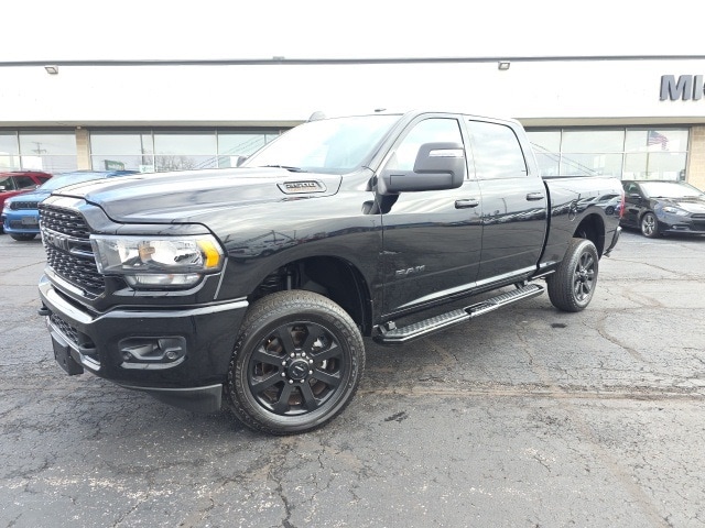 2024 Diamond Black Crystal Pearlcoat Ram 2500 Big Horn 4WD 6.4L V8 8-Speed Automatic This Ram 2500 has many features and is well equipped including, Passed 101 Point Dealership Safety Inspection!, 12" Touchscreen Display, 2nd Row In Floor Storage Bins, 4G LTE Wi-Fi Hot Spot, 8.4" Touchscreen Display, 9 Alpine Speakers w/Subwoofer, Adaptive Cruise Control w/Stop, Adaptive Steering System, Air Conditioning ATC w/Dual Zone Control, Alexa Built-In, All R1 High Radios, All Radio Equipped Vehicles, Anti-Spin Differential Rear Axle, Apple CarPlay, Auto High Beam Headlamp Control, Auto Power-Folding Mirrors, Auto-Dimming Rear-View Mirror, Bed Utility Group, Big Horn IP Badge, Black Exterior Mirrors, Black Exterior Truck Badging, Black Headlamp Bezels, Black Interior Accents, Black Ram Head Tailgate Badge, Black Tail Lamp Bezels, Blind Spot & Cross Path Detection, Bluetooth Handsfree Phone & Audio, Body Color Door Handles, Body Color Grille Surround, Connected Travel & Traffic Services, Connectivity - US/Canada, Disassociated Touchscreen Display, Dual Glove Boxes, Exterior Mirrors Courtesy Lamps, Exterior Mirrors w/Heating Element, Exterior Mirrors w/Supplemental Signals, Foam Bottle Insert (Door Trim Panel), Footwell Courtesy Lamp, For Details, Visit DriveUconnect.com, For More Info, Call 800-643-2112, Forward & Reverse Utility Lights, Front Fog Lamps, Full Speed Forward Collision Warning Plus, Global Telematics Box Module (TBM), Gloss Black Nostrils/MIC Black Grille, Glove Box Lamp, Google Android Auto, GPS Antenna Input, GPS Navigation, HD Radio, Integrated Center Stack Radio, Integrated Voice Command w/Bluetooth, Lane Keep Assist, Leather Wrapped Steering Wheel, LED Bed Lighting, LED Tail Lamps, Level 1 Equipment Group, Locking Lower Glove Box, Mirror Running Lights, MOPAR Deployable Bed Step, MOPAR Spray In Bedliner, Night Edition, Off-Road Information Pages, Painted Flat Cab-Length Side Steps, Painted Front Bumper, Painted Rear Bumper, Panic alarm, ParkSense Front/Rear Park Assist System, ParkView Rear Back-Up Camera, Power Adjust 8-Way Driver Seat, Power Adjust Mirrors, Power Adjustable Convex Aux Mirrors, Power Heated Fold Telescope Mirrors, Power Telescoping Mirrors, Premium Cloth 40/20/40 Bench Seat, Protection Group, Quick Order Package 2GZ Big Horn, Radio: Uconnect 5 Nav w/12.0" Display, Rain Sensitive Windshield Wipers, Rear Dome w/On/Off Switch Lamp, Remote keyless entry, Safety Group, Selectable Tire Fill Alert, SiriusXM Radio Service, SiriusXM Satellite Radio, SiriusXM w/360L, Steering Wheel Mounted Audio Controls, Tilt steering wheel, Tow Hooks, Trailer Tow Pages, Turn signal indicator mirrors, Wheels: 20" x 8.0" Black Painted Aluminum.